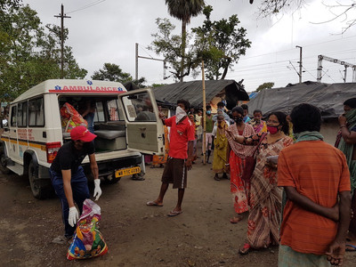 notamment les migrants, et les quantités distribuées sont insuffisantes. Stimulés par le grand élan de solidarité qui s’est emparé de Calcutta, avec l’aide de nos premiers donateurs, nous avons acheté plusieurs tonnes de nourriture pour préparer les rations : riz, lentilles, pépites de soja, huile de moutarde et pommes de terre. “La misère frappe à ta porte pour te dire que ton Seigneur est éveillé.” Le Seigneur est là, présent dans ces plus pauvres, mendiant notre générosité. En retour, il nous donne la joie de recevoir des sourires de gratitude. Au centre d’Ashaneer, devenu un gigantesque entrepôt, une équipe se charge en amont de préparer les rations à distribuer. Les responsables de centres et de programmes contactent les familles par téléphone ou se déplacent sur le terrain pour déterminer qui est prioritaire. Après avoir distribué des coupons et identifié un lieu de distribution – souvent en pleine rue et parfois sans l’aide de la police – une dernière équipe emmenée par une de nos ambulances, distribue les rations. Pendant la première semaine, pris par l’urgence, notre centre de EPN a acheté directement des rations que nous avons préparées et distribuées à plus de quatre-vingts familles du quartier. Ce moment de service nous a beaucoup soudé et a contribué à faire de nous une vraie communauté. Ce service est certainement destiné à durer plusieurs mois car les familles vont mettre un certain temps à retrouver leur niveau de vie précédent.